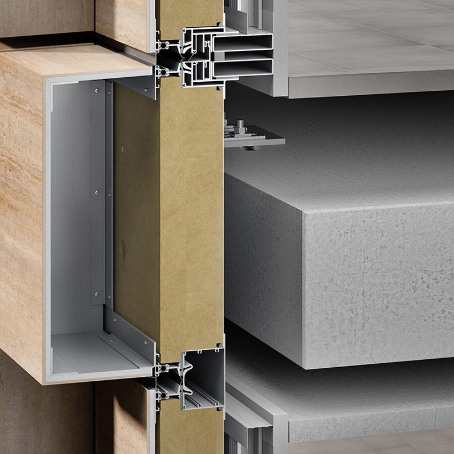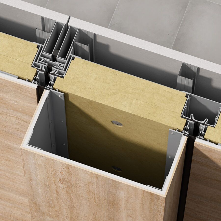 Il sistema con finitura esterna in pannelli GammaStone Air totalmente prefabbricati e posati direttamente in opera tra due solai in cemento armato